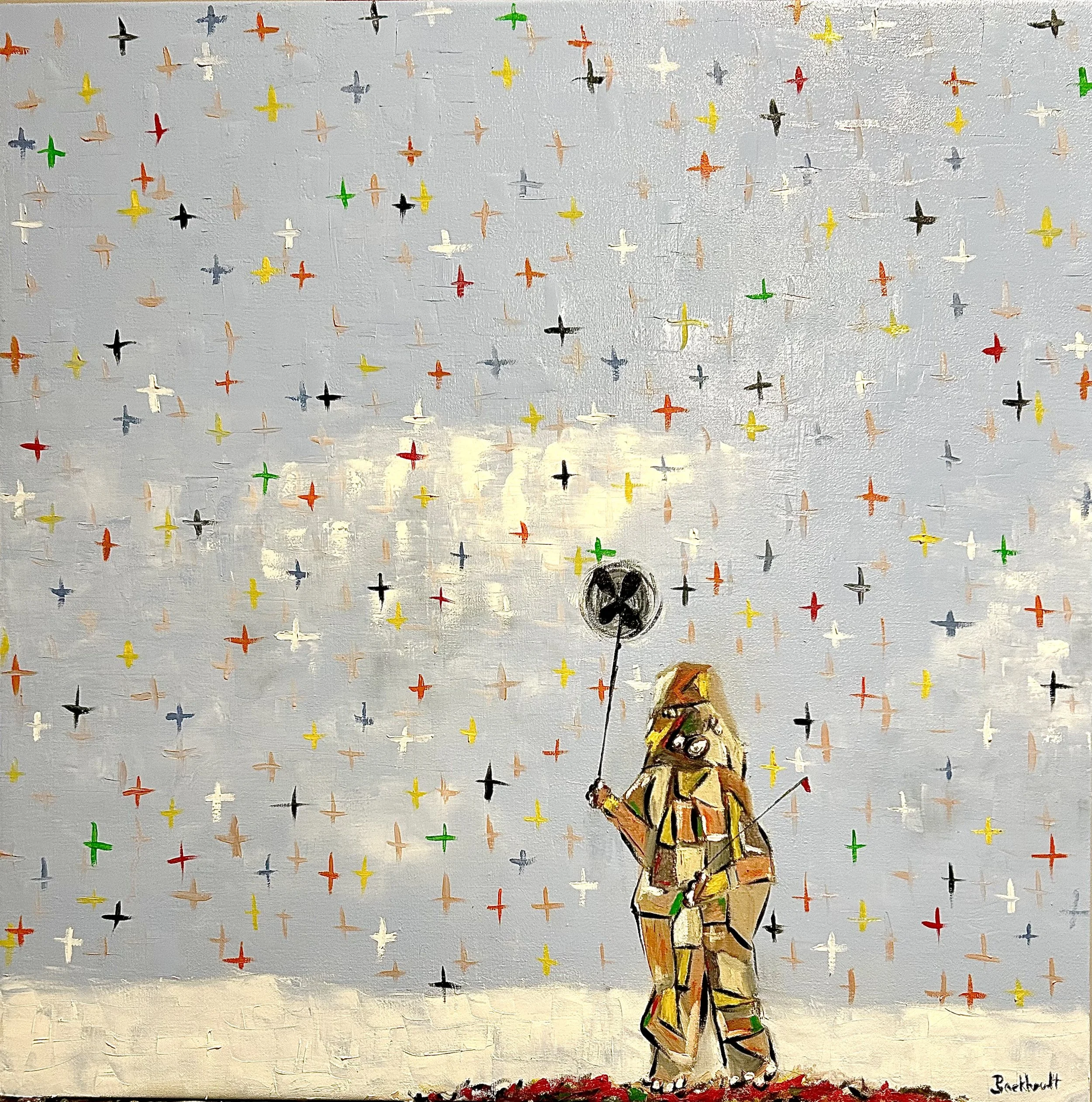 My theme is the society in which we live. My only intention is to empower others to make a change, especially the younger generation. My pieces reflect the legacy of de Kooning, Basquiat and Picasso. During the night, I create and capture ideas. The days that follow, I execute those ideas with drawings and lots of colors onto the linen with indifference to outside criticism.